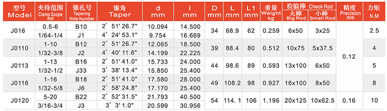 整體使用優質鋼材制作,主要部件淬火,具有高精度,高夾持力、高可靠性和穩定性,并具有自緊功能,輕輕夾緊鉆頭即可,在工作過程中,隨著扭矩的增加,夾持力同步增加,并產生高強度夾持力防止刀具打滑或掉落.